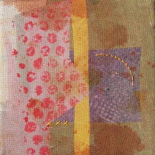 I used the opportunity to experiment a bit. I am, as are many textile artists I know, conflicted about putting fabric under glass in the framing, or finishing, process. Behind glass textile art can (but not always) loose the depth and texture that I love most about fabric. Ironically, my recent work, which is traditionally matted and framed, is selling very well…so like I said: conflicted.